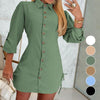 Women's Lapel Button-Down Side Drawstring Shirt Dress
