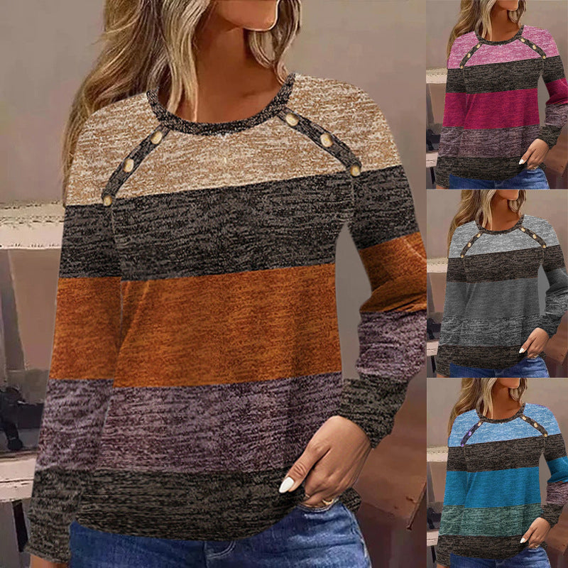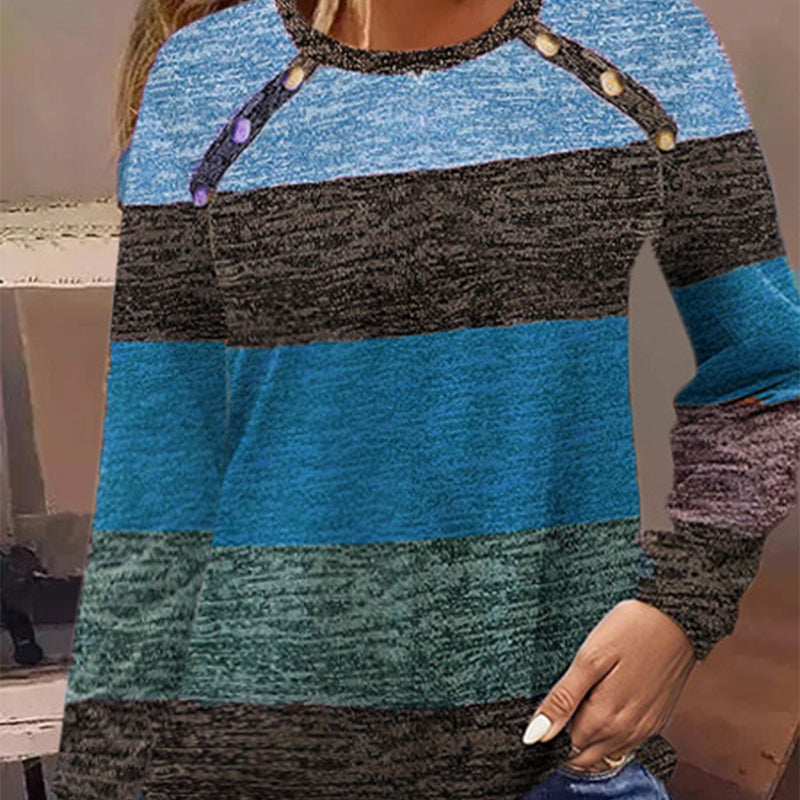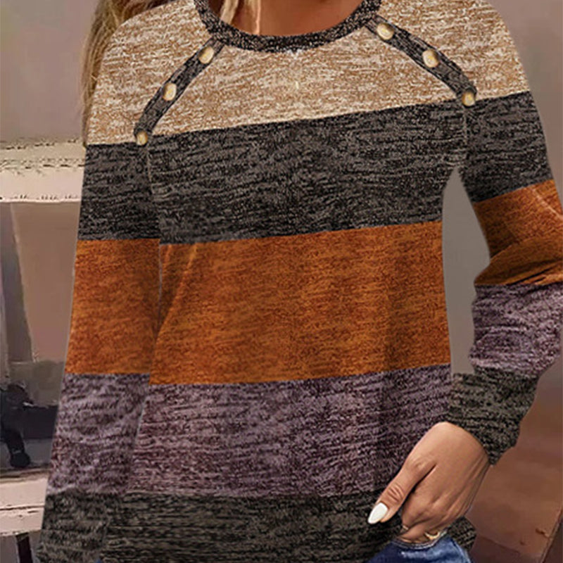 Women's Casual Color Block Round Neck Top
