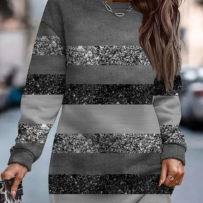Women's Color-Block Long Sleeve Mini Sweater Dress